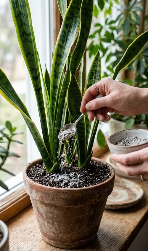 A snake plant that responds well to ashes shows firmer leaves. The leaves stand more upright. New growth looks thicker and healthier. Soil dries evenly and does not stay soggy. Roots grow stronger without rot. If you see steady improvement over several weeks, the amount used was correct. If growth slows or leaves fade, stop using ashes immediately.