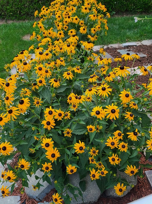 Black-eyed Susan grows well in USDA zones 3 to 9. The flowers drop seeds on their own, so new plants often come back every year. Birds, especially American goldfinches, love the small black seeds. The flowers also attract many pollinators like bees and butterflies.