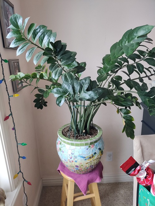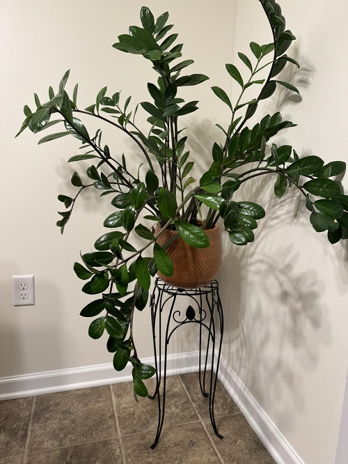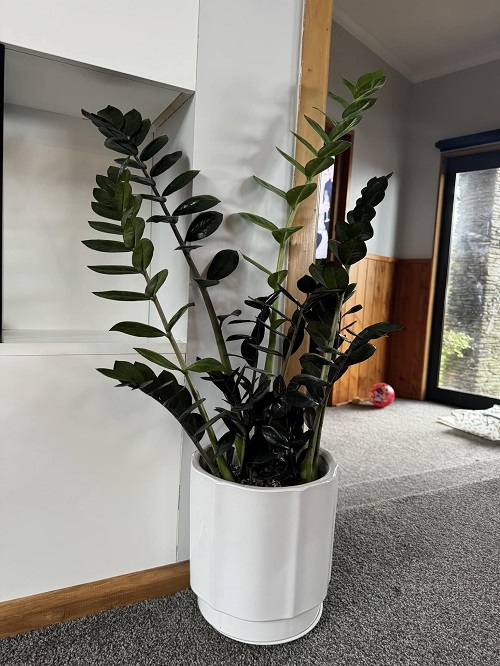 A corner in the living room with soft, steady light is a comfortable place for a ZZ plant. It handles low light easily, so it does not struggle even if the room gets only a few hours of daylight. This spot also keeps the plant safe from direct sun. When you place it in a corner, the plant adds greenery without needing much space. It grows slowly but stays healthy when the temperature stays stable.