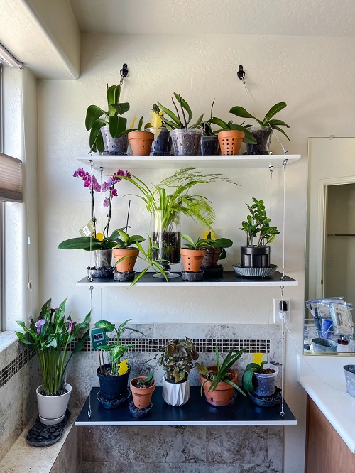 A bathroom with a window creates a warm and humid environment that orchids enjoy. Steam from showers raises humidity, which protects buds from drying. Natural light from the window keeps the plant active and encourages new growth. Make sure the plant sits on a shelf where it receives bright indirect light and stays safe from sudden splashes of water.