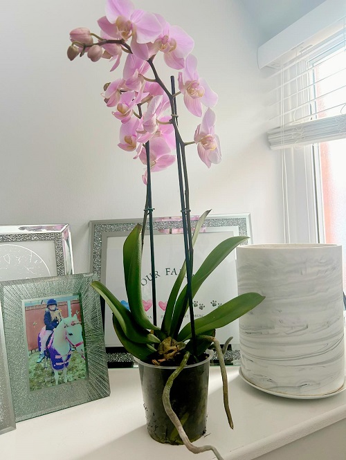 A west-facing window brings soft evening light that warms the room as the day cools. Orchids enjoy this gentle rise in warmth because it supports bud formation. The light is not harsh in winter, and it helps maintain the plant’s regular growth cycle. Keep your orchid a short distance from the cold window glass and protect it from strong drafts.