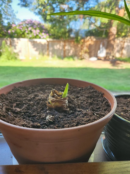 After dormancy, place your amaryllis in a bright, sunny window. It needs at least 6–8 hours of indirect sunlight daily to build up energy for buds.