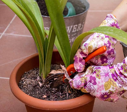 Only trim the leaves when they turn yellow and dry naturally. This shows that the bulb has stored enough energy for the next bloom cycle.