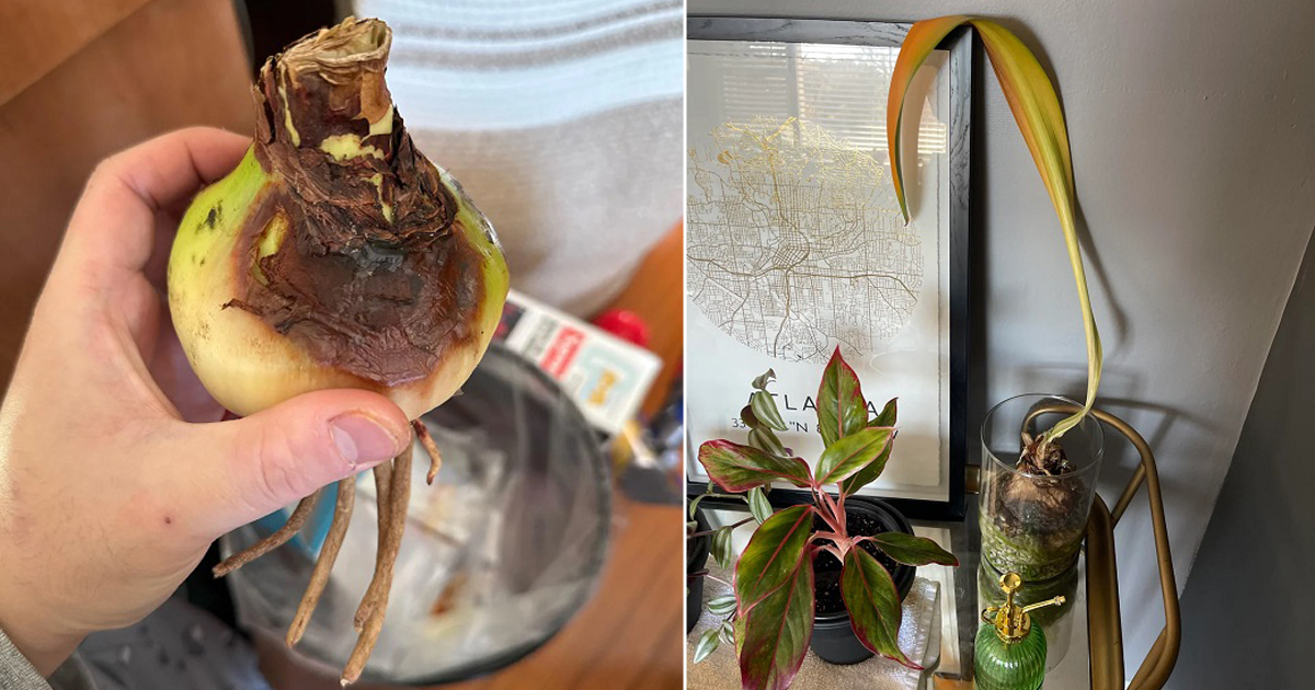 Amaryllis bulbs are prone to rot if they sit in soggy soil. When the roots are damaged, the bulb cannot support healthy flower growth.