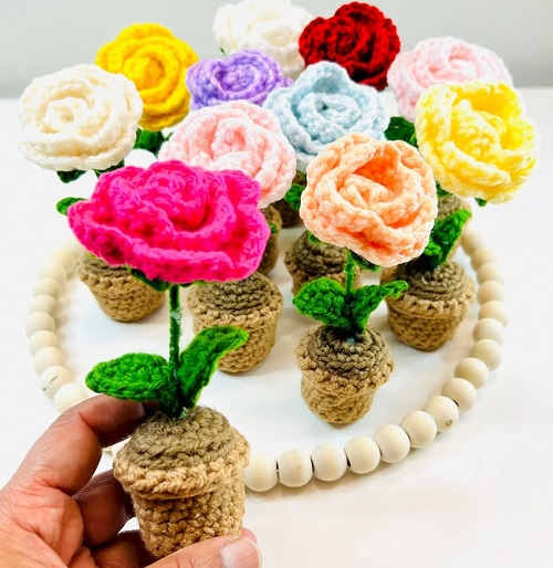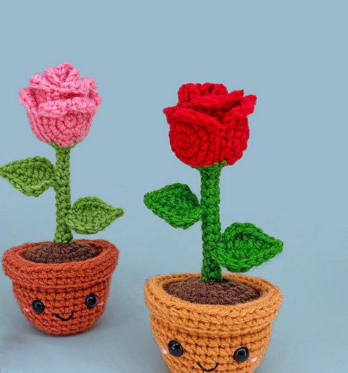 6. Rose Flower Pot Crochet Pattern