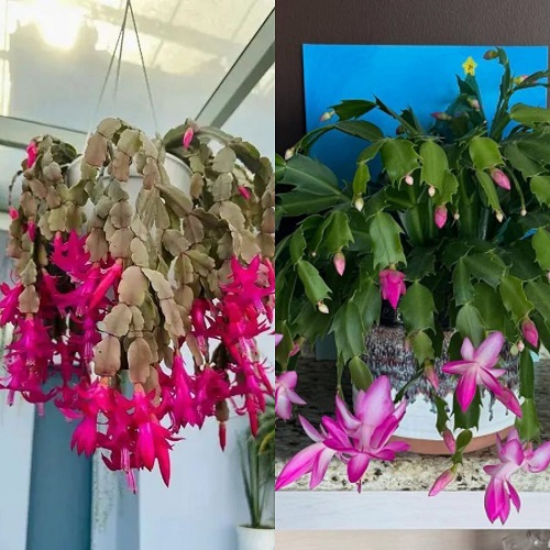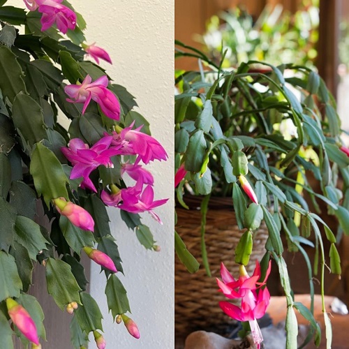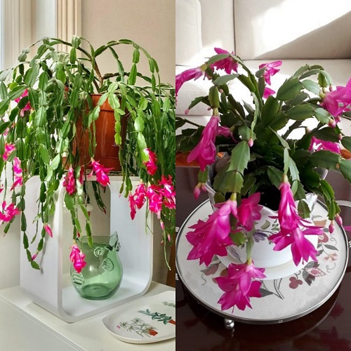 Christmas cactus blooms later, in December, near Christmas. The blooming time depends on the internal rhythm of the plant and how long the days and nights are. If you want flowers for a specific holiday, knowing this difference is very helpful.