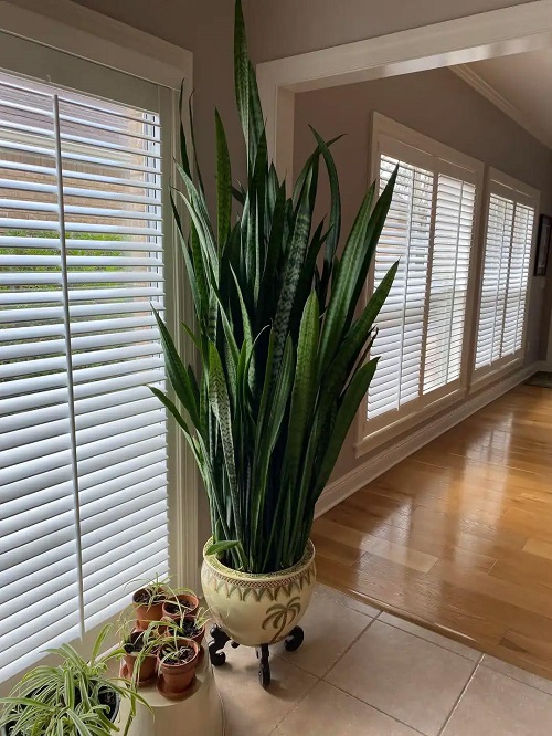 All of this can harm even tough plants. Snake plants grow best in indirect or filtered light, not in constant harsh sun. If you keep them outside without shade or near a south-facing window with no curtain, their leaves can get burned easily.