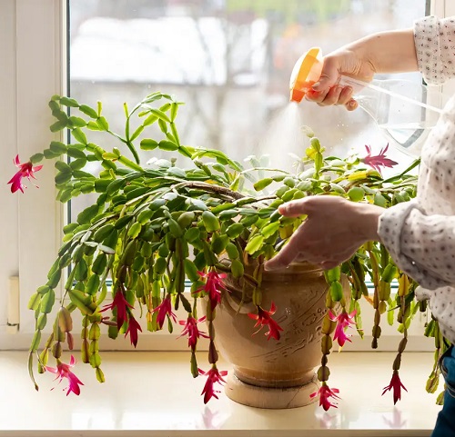 Besides watering, you should also check the humidity. Since Christmas cacti originate from the tropics, they grow best in 50–60% humidity, which is higher than the typical humidity level in most homes. They can handle a little less, but very dry air can cause buds to drop.