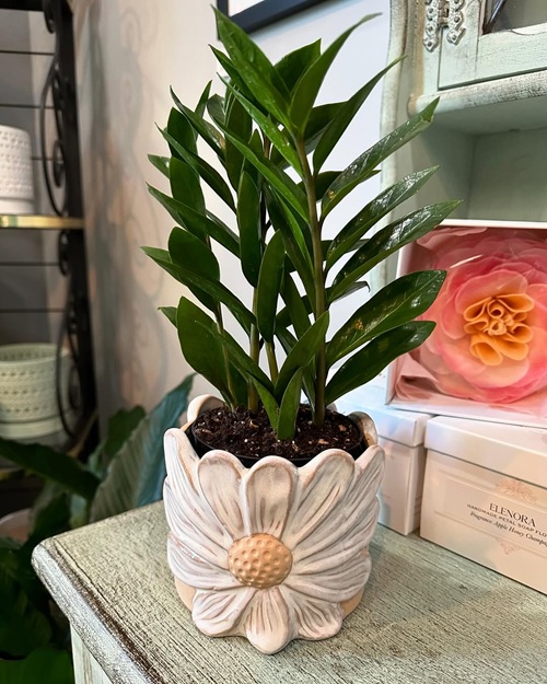 The ZZ plant stays green and shiny even when daylight hours drop. The thick stems and waxy leaves help it hold moisture, so it survives winter dryness easily. It grows slowly but stays full and clean-looking. You only need to dust the leaves and give them occasional water.