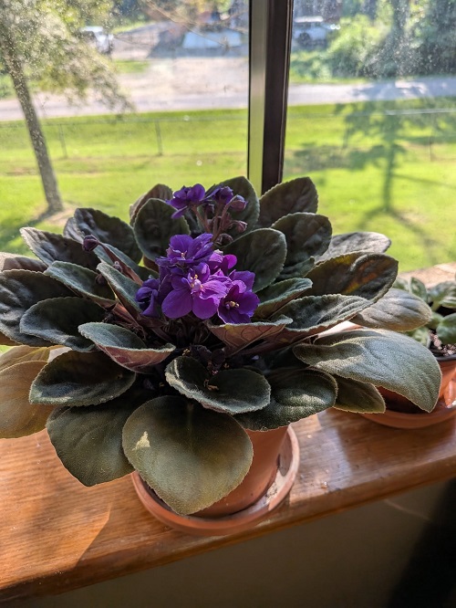 Keep your African violet near a bright east-, south-, or west-facing window, but make sure it is not hit by direct sunlight. Also, check that nothing blocks the light from reaching the plant. With the right amount of indirect light, your African violets will stay healthy and happy.