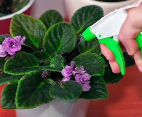 How you water African violets matters as much as the water you use. Their soft, fuzzy leaves hold onto water drops easily. These drops do not dry quickly. Even one small drop of cold water can sit on the leaves for a long time and leave ugly spots.