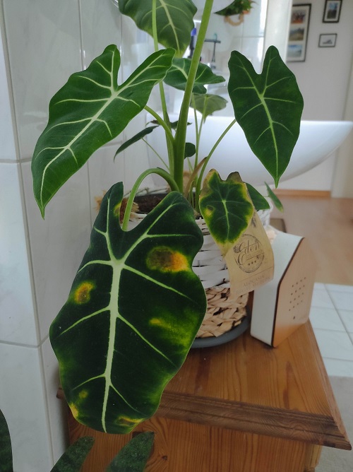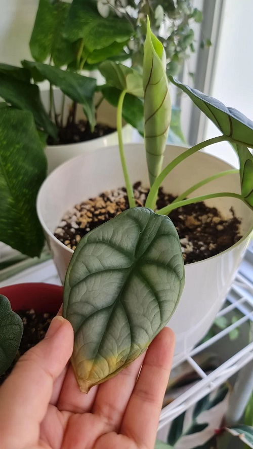 Cold air shocks Alocasia. Air from AC vents, open windows, or cold floors damages leaf tissue. Leaves droop and develop yellow patches. Growth stops during stress. Repeated cold exposure weakens the plant slowly. The plant uses energy to survive rather than to grow. Over time, this stress leads to leaf loss and poor recovery.