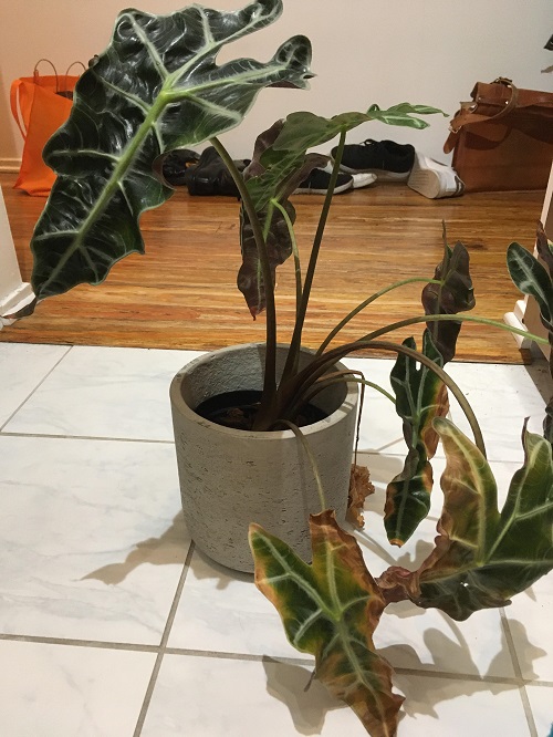 Alocasia comes from humid regions. Dry indoor air causes slow damage. Leaf tips turn brown. Edges crisp up. New leaves struggle to open properly. The plant loses moisture faster than it can replace it. Low humidity weakens leaves and stems. Over time, the plant becomes fragile and more likely to attract spider mites and other pests.