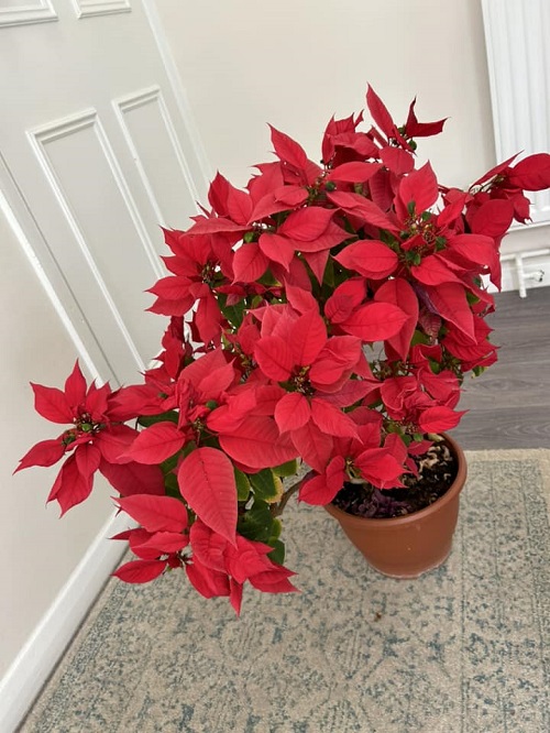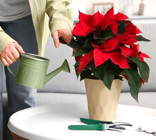 One of the biggest mistakes people make is giving too much water. Poinsettias do not like to sit in soggy soil. If the pot has no drainage, the roots start to rot, and the leaves fall off quickly.