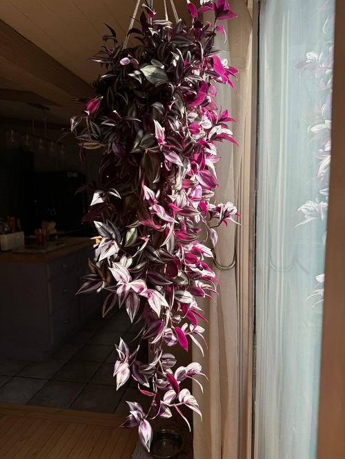 Did you notice leggy vines with large gaps between leaves of wandering jew? This is their way of telling that they have been kept in low light. In their natural habitat, these plants grow under filtered sunlight, which encourages growth and vibrant leaf coloration.