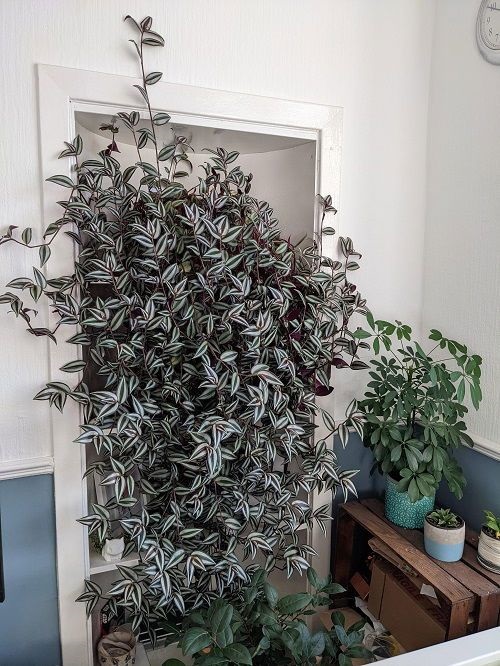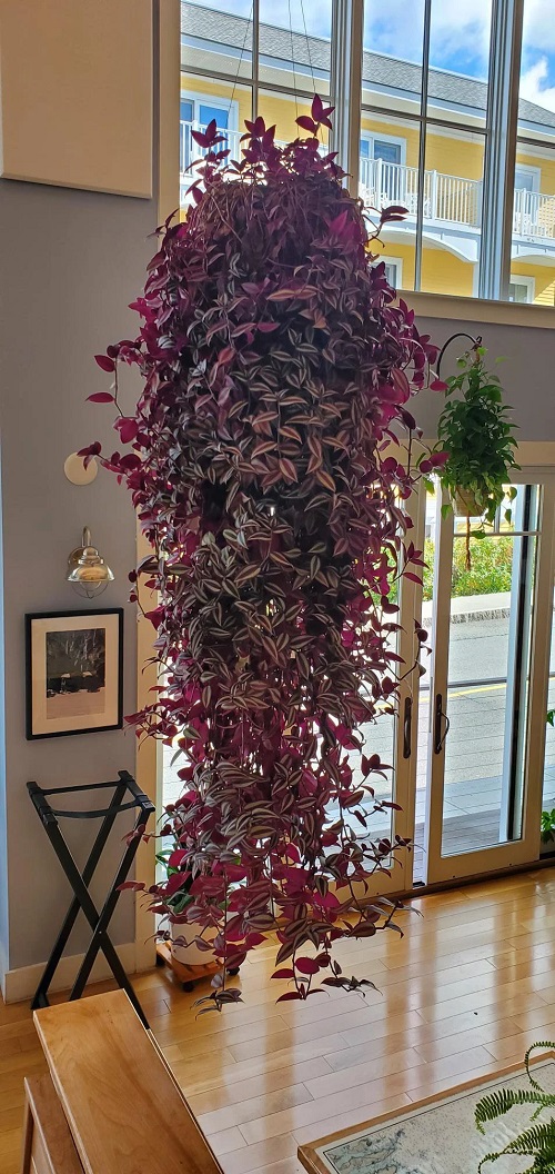 This is the easiest method to have a cascading wandering jew in your home. They produce long, flexible stems that tend to drape downward rather than grow upright, making them the most popular indoor plant. Grow them in a hanging planter or an elevated container, which encourages long vines and forms a curtain of foliage instead of a crowded clump.