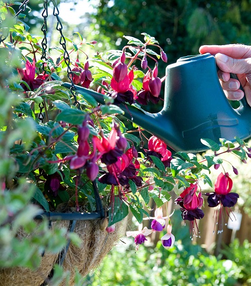 Instead, move your plant to a cooler and shady place. If you have a hanging basket, bring it down and keep it in the shade. If your fuchsia is in a pot, shift it to a spot with less direct sunlight. You can also mist the leaves with water. This helps cool the plant and gives quick relief.