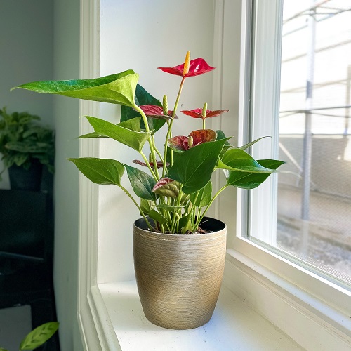 You can place your anthurium on a side table or a center table to add a lasting touch of color and beauty to your home