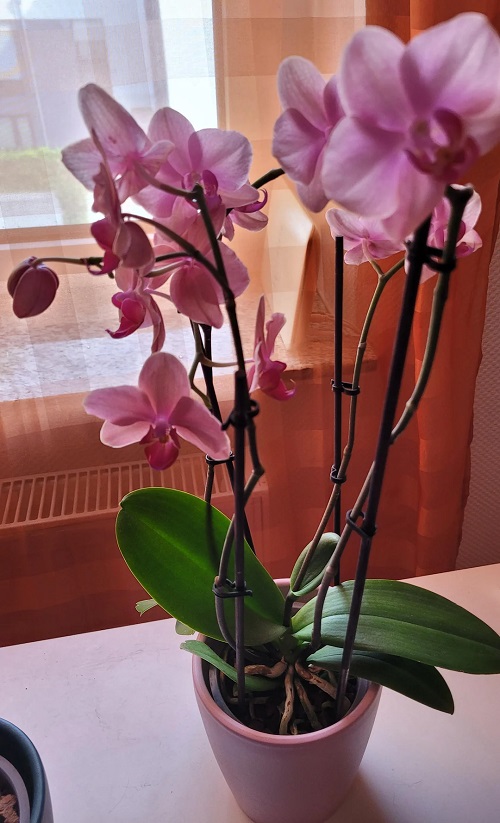 Light plays a big role in spike development. The light is softer in the month of February, but days slowly grow longer. In this situation, move orchids closer to a bright window where they receive filtered light. Avoid keeping the plant in harsh direct sun, which can burn leaves. Leaves should look light green, not dark. Healthy light levels tell the orchid that blooming season is near.