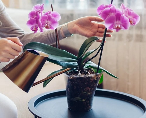 In February, orchids still need regular watering, but excess moisture can stop spike growth. Water only when the potting mix feels slightly dry. Roots should stay firm and green, not soggy. Too much water keeps the plant focused on survival instead of flowering. Always drain extra water fully. Never let the pot sit in standing water.
