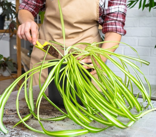 Spider plants grow fast and can become root-bound. Slide the plant out of its pot and inspect the roots. If roots are tightly packed or circling, repot into a slightly bigger pot. Choose a pot with drainage holes. Do not go too large, as excess soil can hold too much water. Repotting in March gives the plant enough time to settle and grow well in spring.
