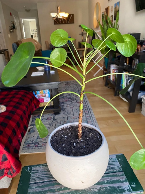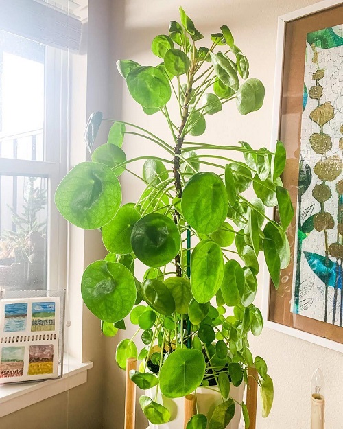 When your Chinese money plant does not get enough bright light, it starts stretching toward the light source. This makes the stem grow long and thin. The leaves appear spaced far apart. The plant focuses on height instead of fullness. Even though it survives, it does not look compact. Placing it in low light for a long time almost always causes this tall and leggy look.