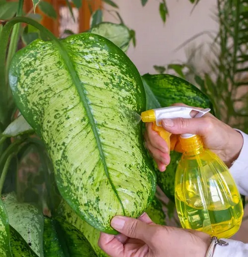 Pests like spider mites and mealybugs can attack Dieffenbachia and suck sap from the leaves. This causes yellow spots, curling, and slow growth. If left untreated, the plant may start dying. Check the leaves regularly, especially under them. Clean the plant with a damp cloth or use a mild soap spray to remove pests quickly.